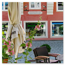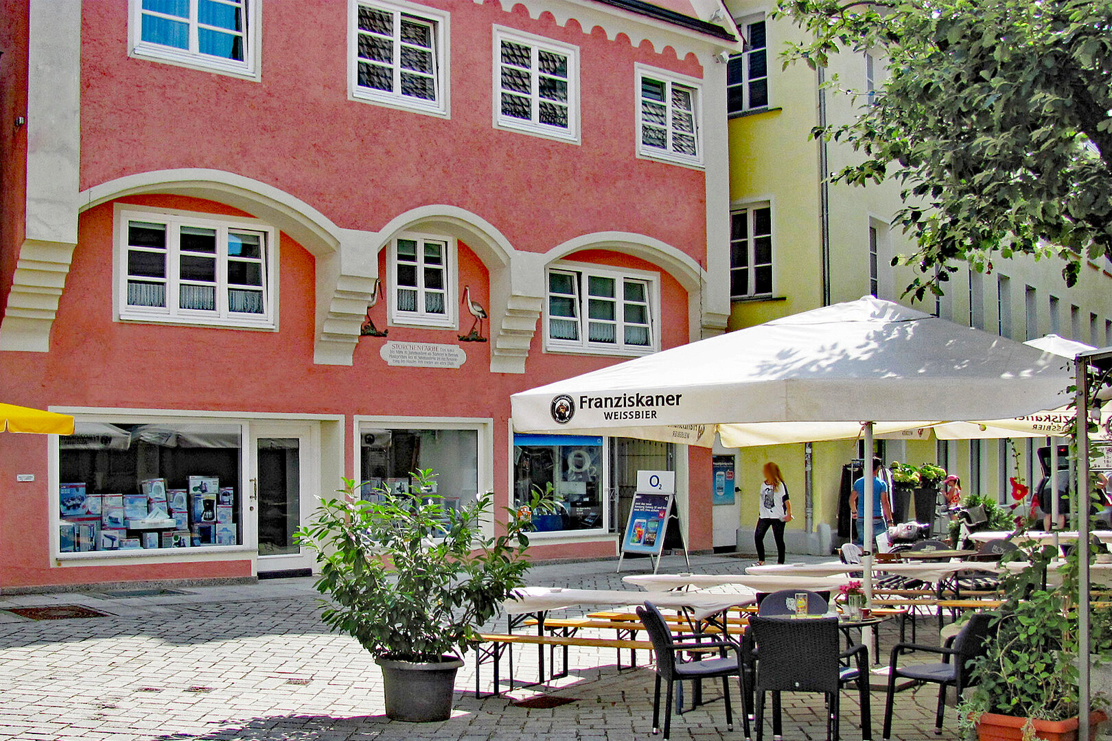 - Das historische Haus Apartment Storchenfärbe befindet sich Anfang Fußgängerzone Memmingen, Allgäu.