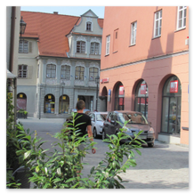 - Frühstückmöglichkeiten ab 3,- € seitlich vor dem Haus beim Bäcker, offen ab 05:30 Mo.-Sa. Bäcker Häussler um die Ecke, Weinmarkt, offen Mo.-So.