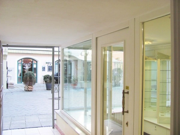 Top Lage, Stadtmitte Memmingen, Anfang Fußgängerzone. Bayern, Allgäu, Schwaben