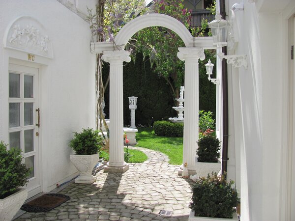 Ein romantischer Garten/Hof mit Sitzmöglichkeit/Tisch steht allen Gästen zur Verfügung.