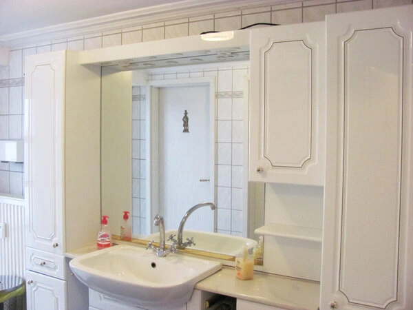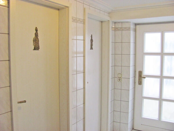 - 1 externes WC im Hof zur Alleinnutzung. Waschbecken mit Warmwasser. Ober- und Unterschrank, Steckdose